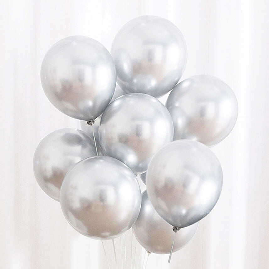 10 بالونات كروم فضية مطاطية معبأة بالهيليوم