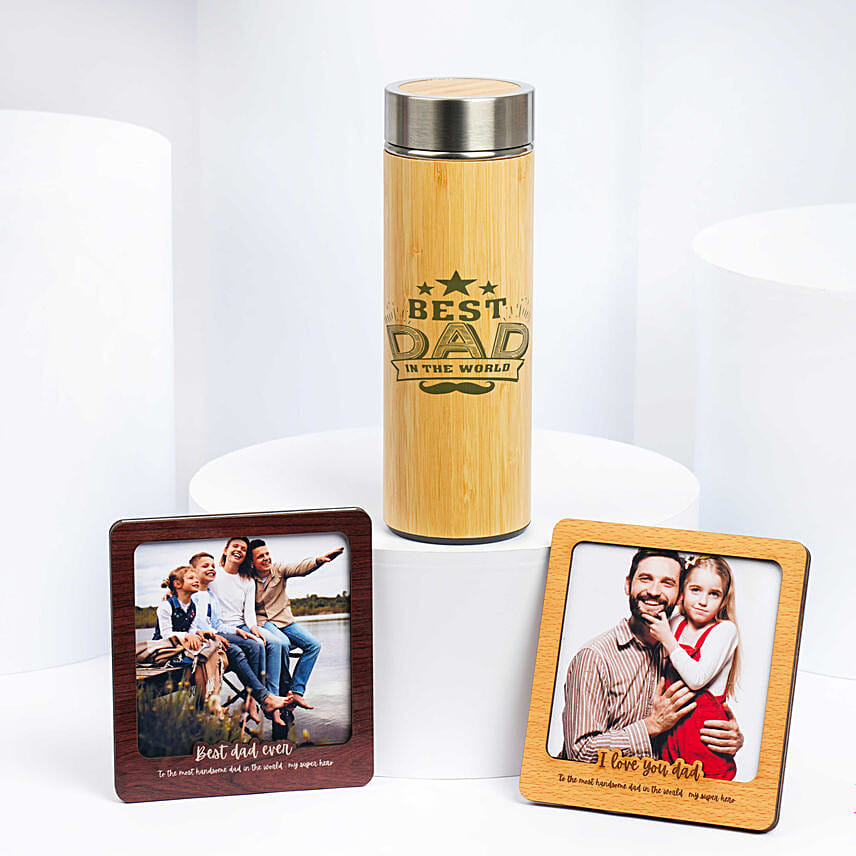 2 مغناطيس ثلاجة وزجاجة خشبية للأب