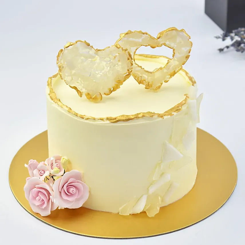 كيكة فاخرة بتصميم القلوب والورود، تُجسد مشاعرك بطريقة لذيذة ومبهجة. مثالية لتفاجئ بها من تحب في أي مناسبة مميزة!