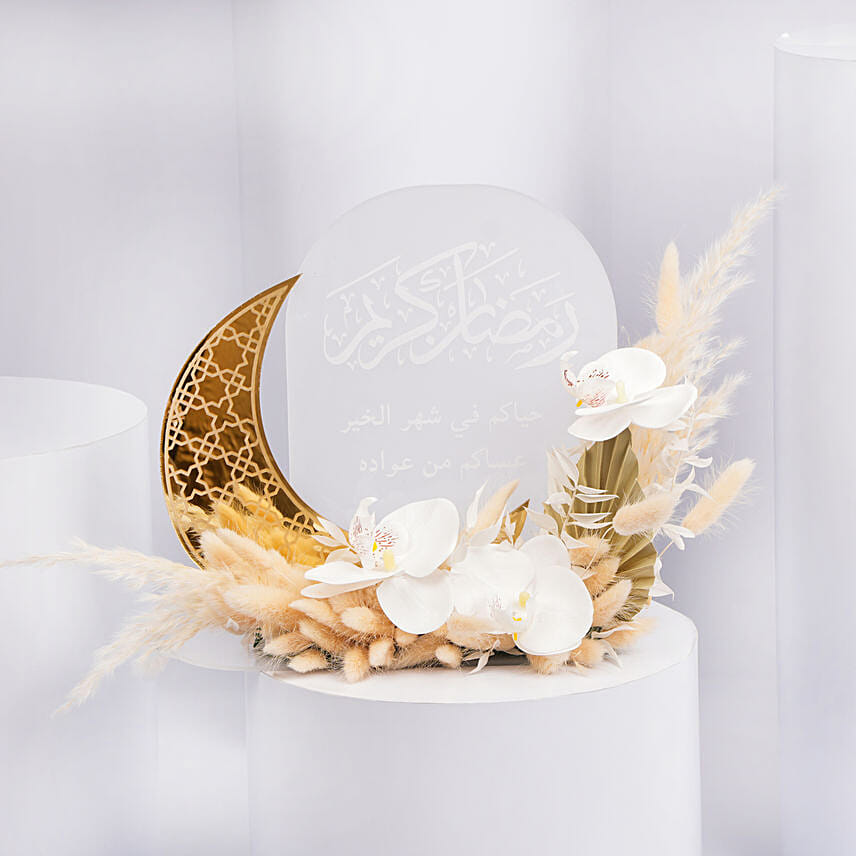 سلة ورد رمضان كريم - باقة أوركيد أبيض فاخرة