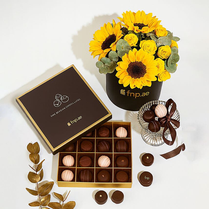 Bright Sunflowers with Truffle Chocolate Combo