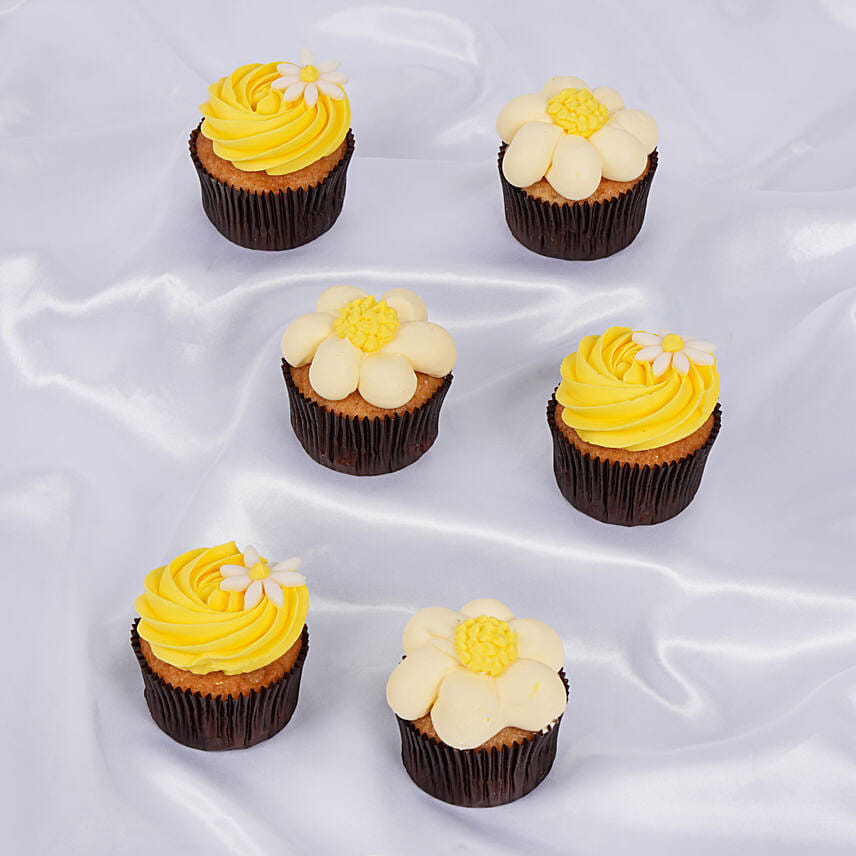 • كب كيك بطابع الأقحوان، نكهة الفانيليا، الكمية: 6 قطع
