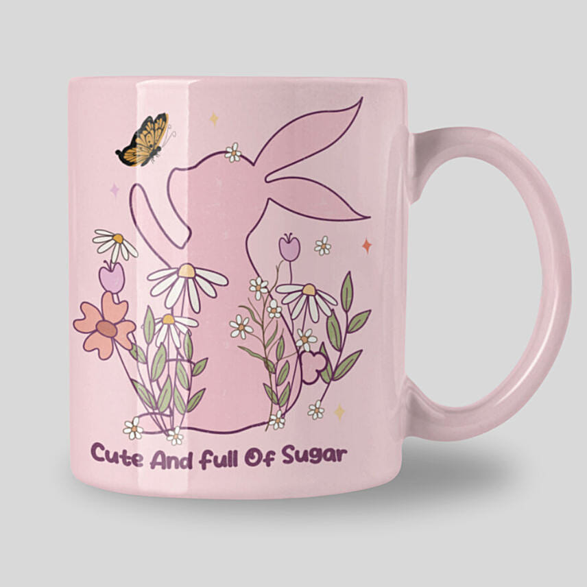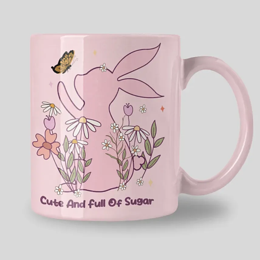هدايا عيد الفصح - كوب الأرنب الوردي مطبوع مسبقاً