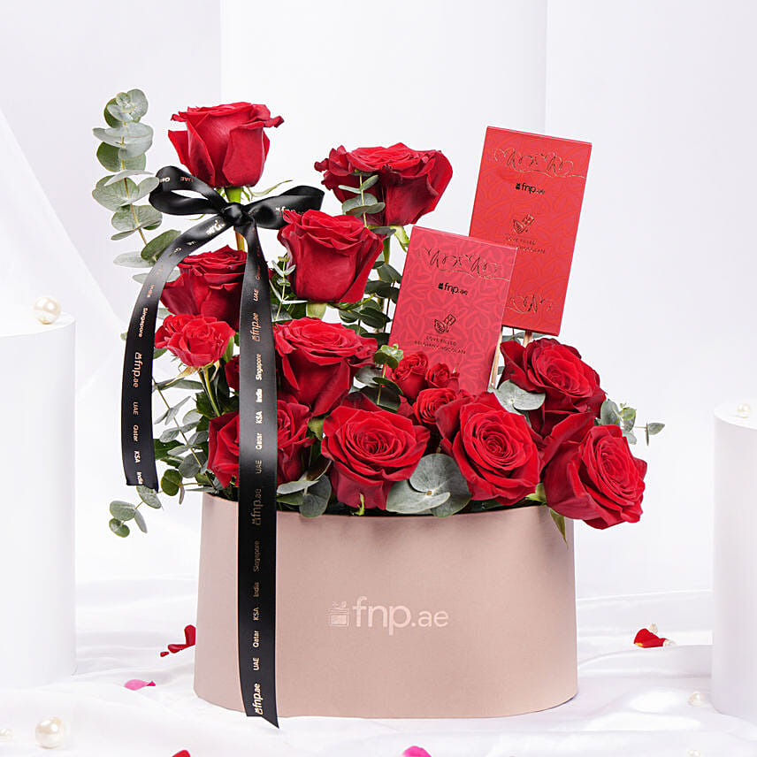 نعيم الحب | بوكس ورد أحمر و شوكولاتة