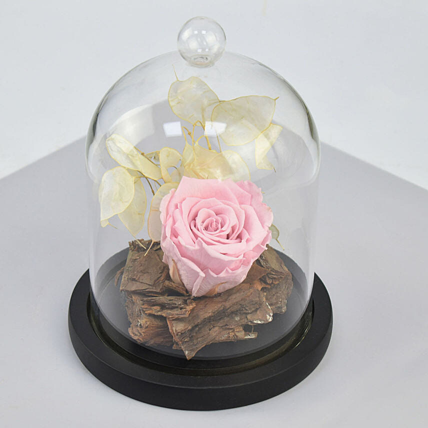 زهرة الأبدية الوردية الجميلة في قبة زجاجية