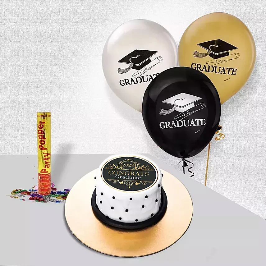 كومبو بالونات ومونو كيك ومزمار الحفلة لاحتفال التخرج