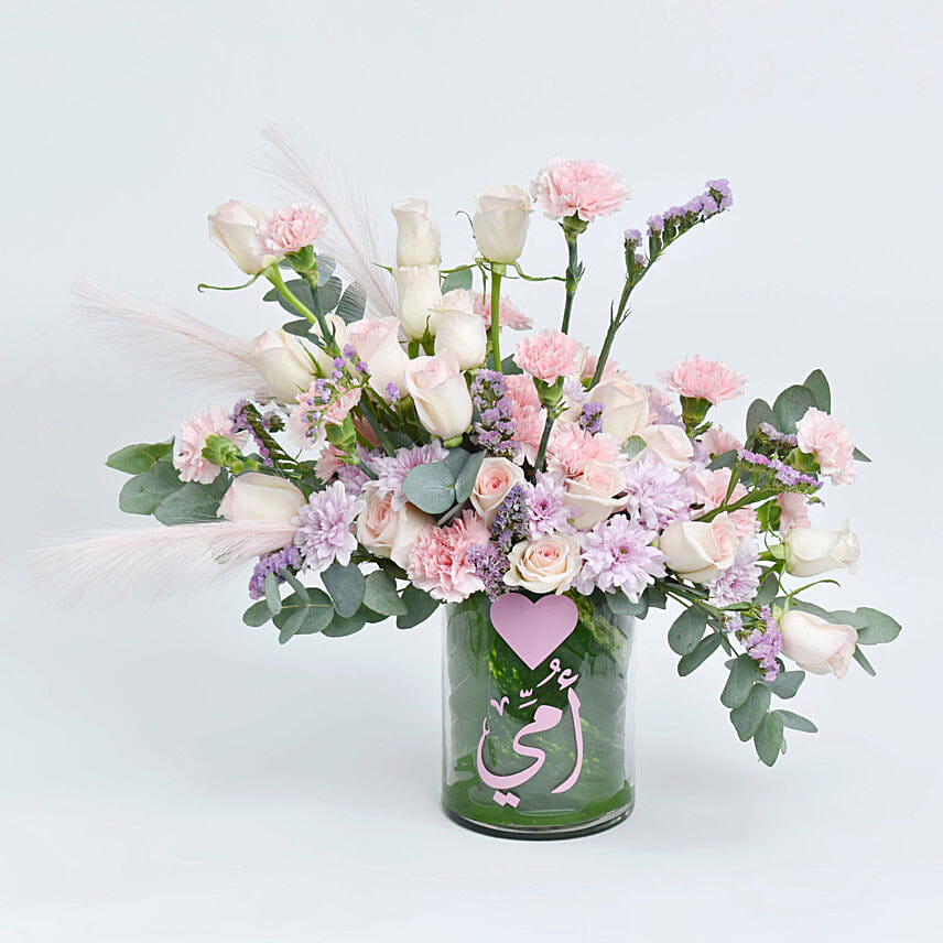 هدية باقة ورد مشكل لون وردي في فازة مخصصة