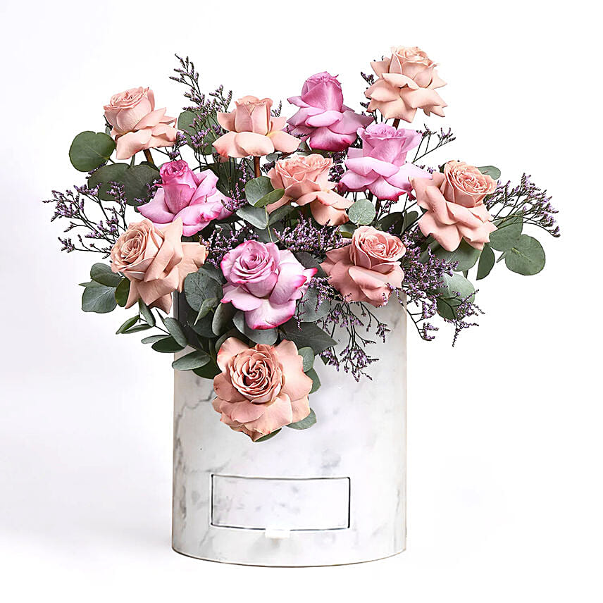 باقة ورد جوري لون كابتشينو ووردي في بوكس مع شوكلاته