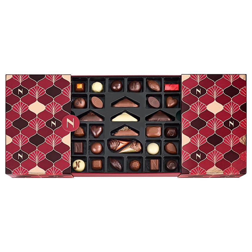 Make every celebration unforgettable with our Festive Sharing Box – Large (822 g), a timeless selection of 62 Neuhaus pralines, crafted to be shared in moments of true togetherness. Inside awaits a refined assortment of milk, dark and white Belgian chocolates, made with passion, precision and the finest natural ingredients by our Maîtres Chocolatiers. Presented in our new Art Deco inspired box and tied with an elegant satin ribbon, this two-layer gift box invites you to share in the joy of Belgian chocolate craftsmanship. Perfect for family gatherings, festive dinners or heartfelt gestures of appreciation, it turns every occasion into a shared indulgence.