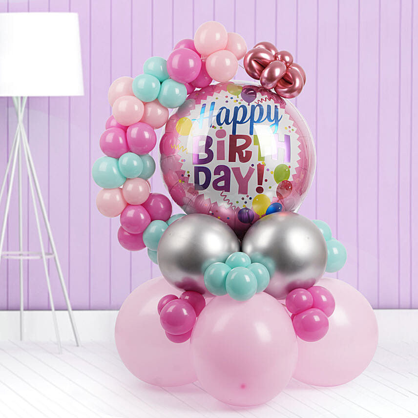 • 1 بالون فويل وردي مكتوب عليه "عيد ميلاد سعيد"