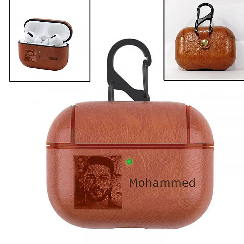 كفر سماعة أبل ايربودز برو من الجلد بكتابة وصورة حسب الطلب