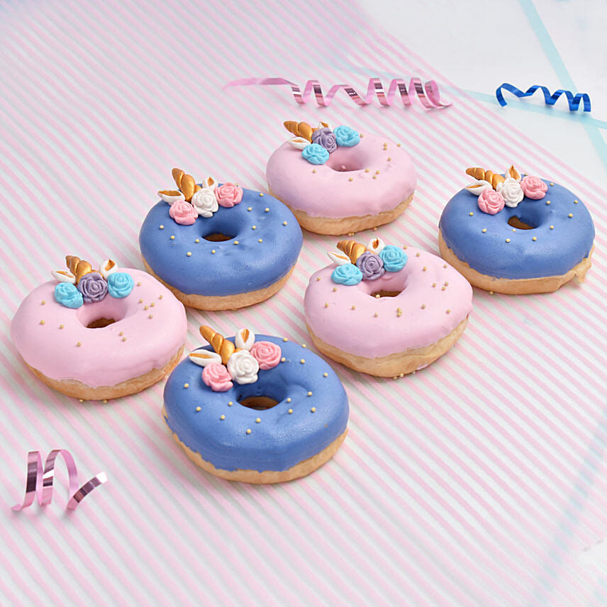 6 قطع دوناتس يونيكورن متنوعة لون أزرق ووردي