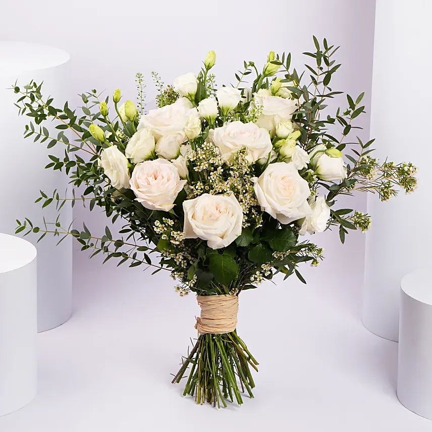 بوكيه ورد نقاء ، هي باقة ورد بيضاء أنيقة تنشر شعور الصفاء والنقاء، مغلفة بطريقة ريفية أنيقة تضيف لمسة طبيعية للمكان.