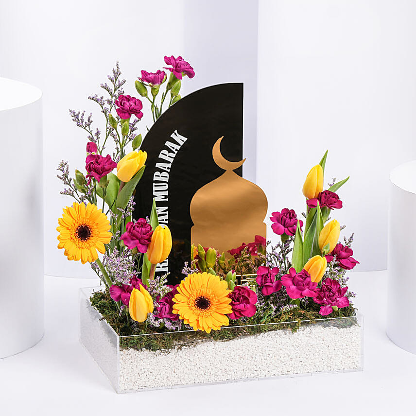مرتبة بشكل جميل في بوكس أكريليك مع أحجار بيضاء اللون