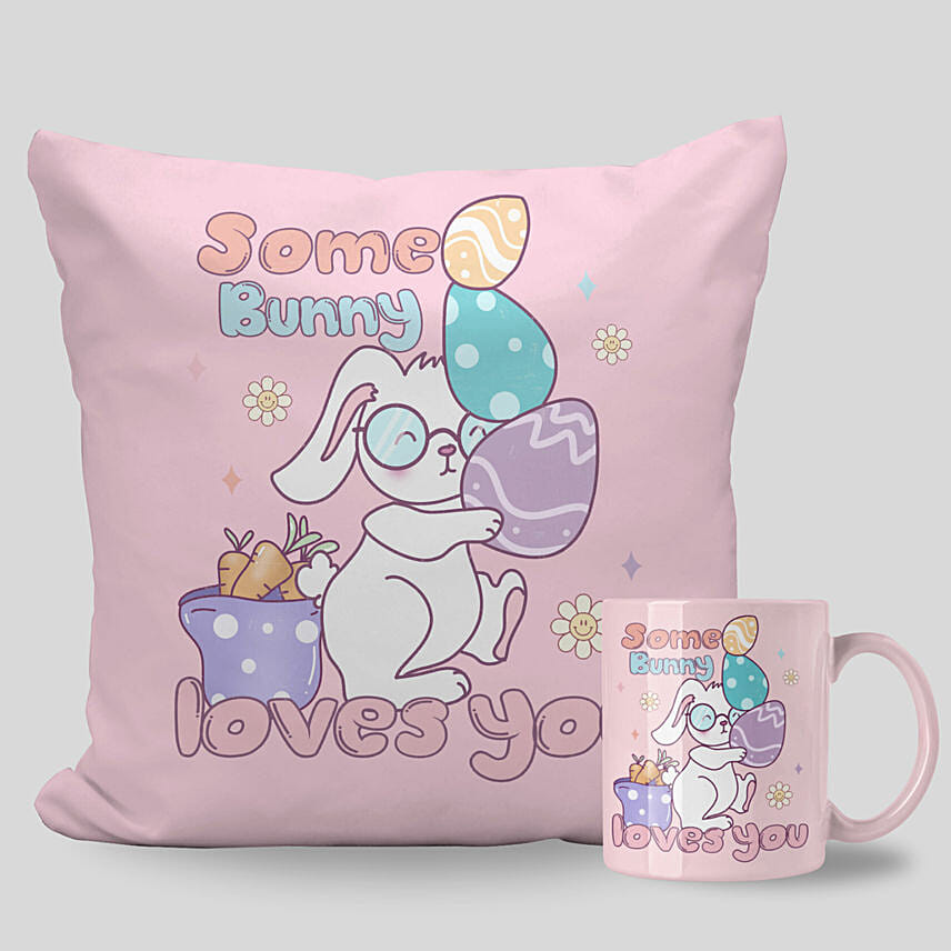 كومبو كوب ووسادة أرنب الفصح وردي مطبوع مسبقاً