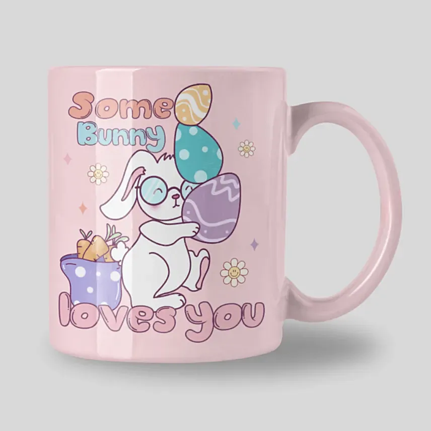 هدايا عيد الفصح - كوب أرنب الفصح وردي مطبوع مسبقاً