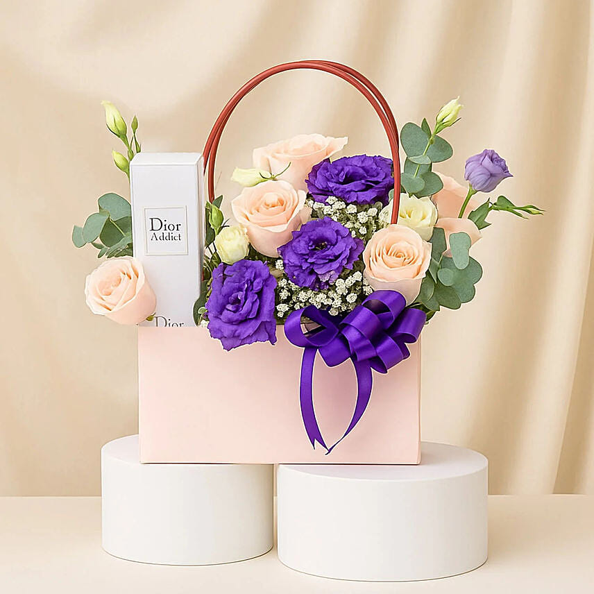 Delight in the luxurious combination of elegance and fragrance with the Dior Addict Blush & Bloom Floral Gift Set. This exquisite arrangement features: