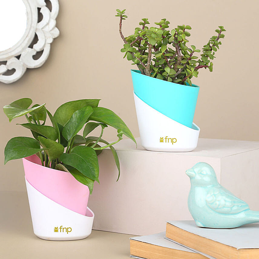 Add a touch of natures beauty to any room with our Jade and Money plant set, displayed in gorgeous, eye-catching planters. A perfect gift for any occasion, these plants not only brighten up any space but also bring good luck and prosperity. With self-watering planters, they make a perfect gift for anyone who wants to add some greenery to their space without the hassle of maintenance.