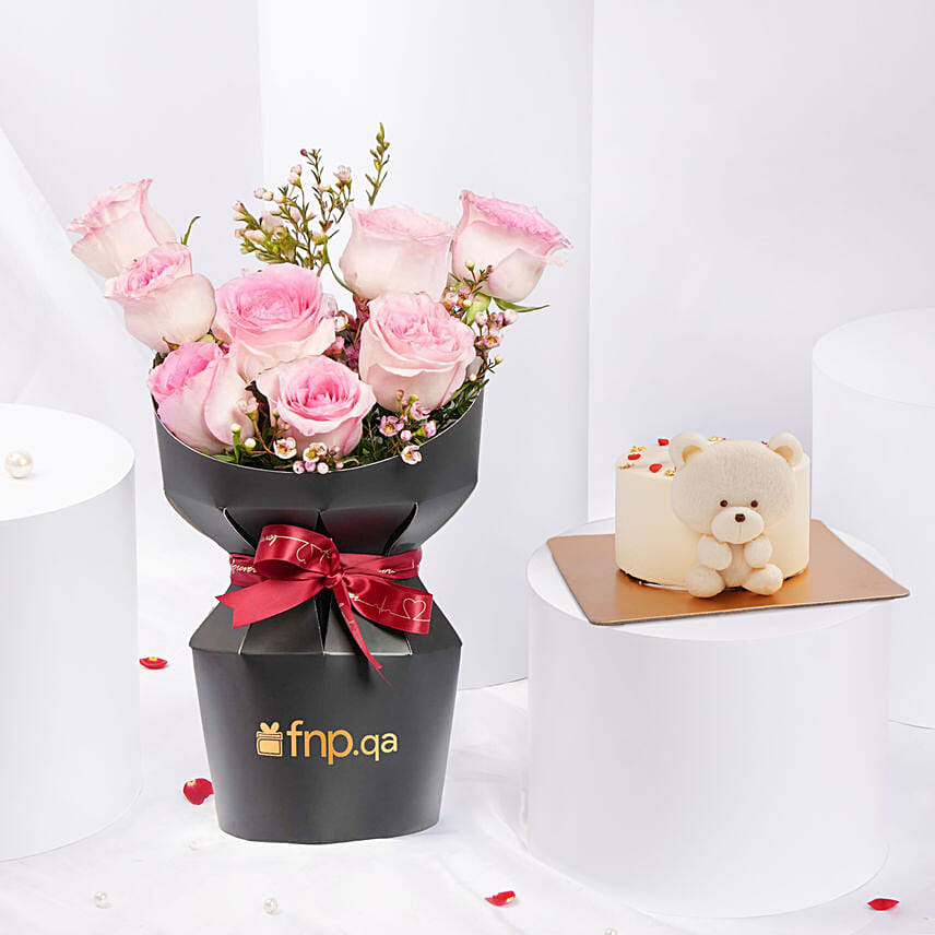 Lovers Bloom 8 Rose Bouquet | Chocolate Mono Cake 200gm