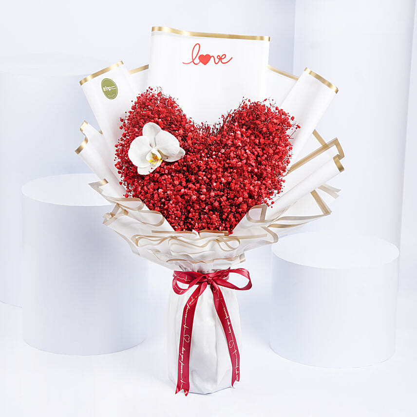 بوكيه القلب - باقة ورد جيبسو شكل قلب مع وردة الأوركيد الفاخرة