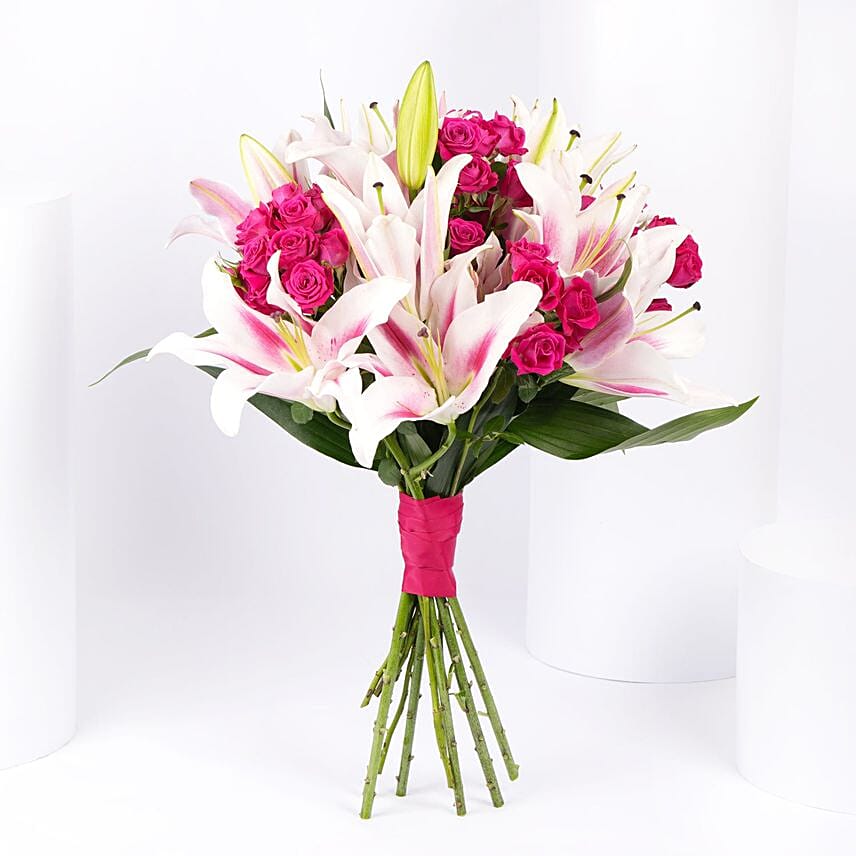 Pink Lily And Baby Rose Bouquet - Fragrant Embrace