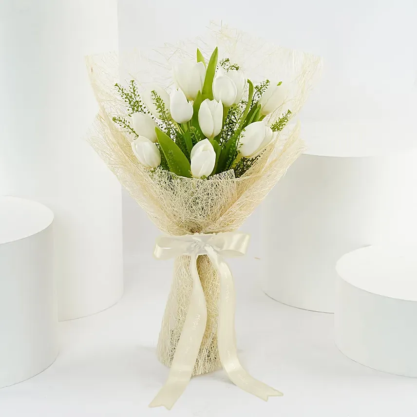 Delight your loved ones with a stunning tulip bouquet that radiates elegance and charm. Our tulip arrangements come in a variety of vibrant colors, from soft pastels to bold hues, making them the perfect flower gift for any occasion. Whether you’re celebrating a birthday, anniversary, or sending a thoughtful "get well soon" message, tulips are a timeless choice that speaks volumes of love and care.Product Details: