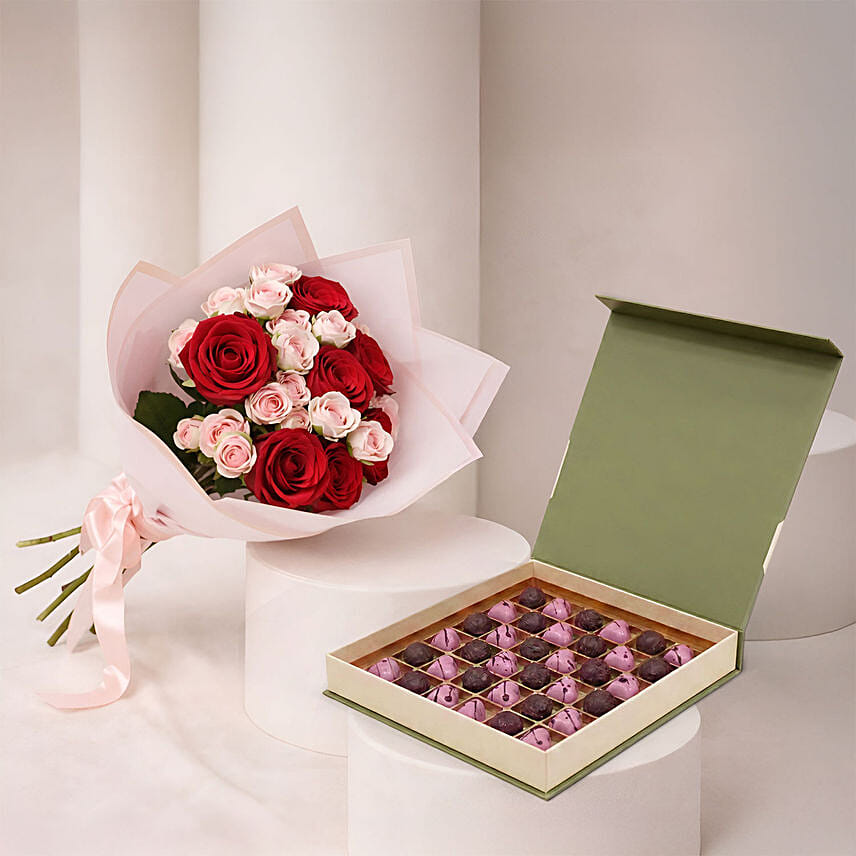 Eternal Love Valentine's Roses Bouquet and Chocolates Gift