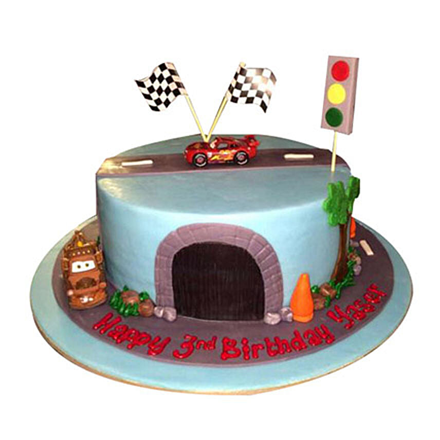 A cute presentation of a car race is attained here with models of racing cars, flags, and traffic signal lights intact in this cake presentation. This stunning cake can bring lots of happiness and joy on your little boy’s face. So, bring this home and wish on his birthday.