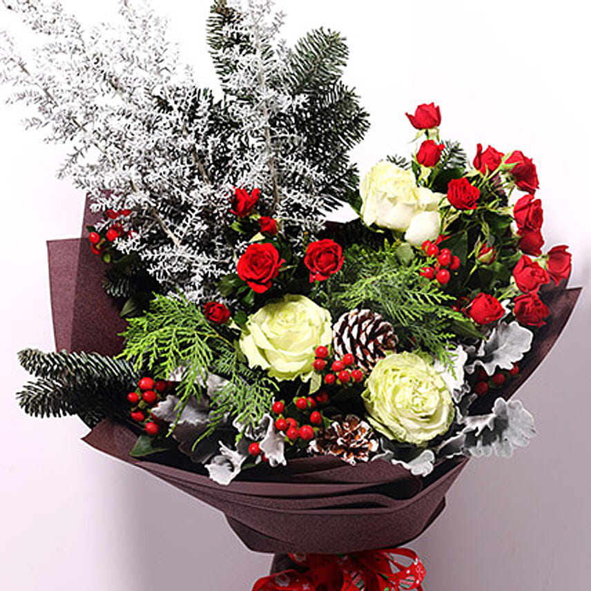 • Decorated with Pine cone and Ribbon in a Brown Wrapping