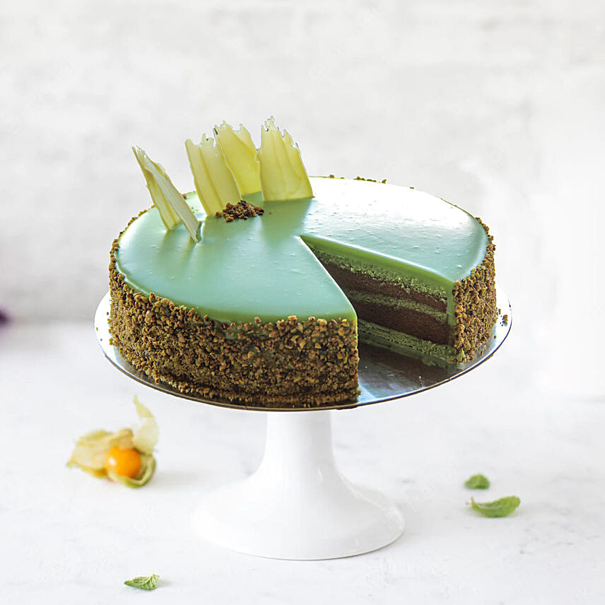 • Pistachio chiffon sponge and nutella chocolate mousse layers. Covered with pistachio ganache.