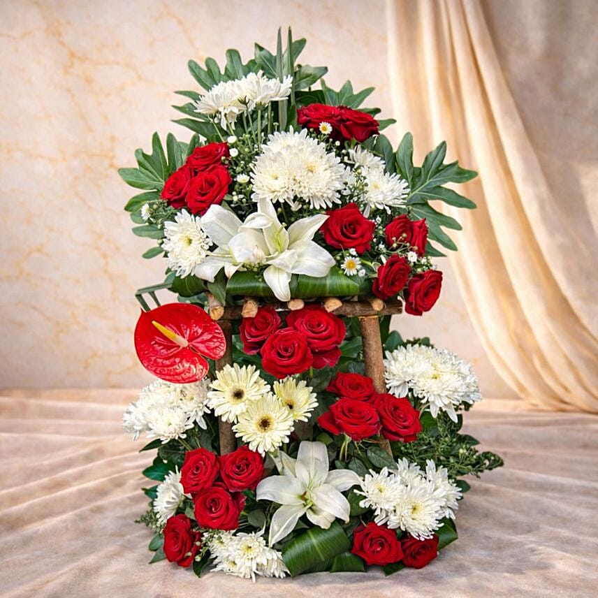 Elegant Red Roses White Chrysanthemum and Lily Floral Stand