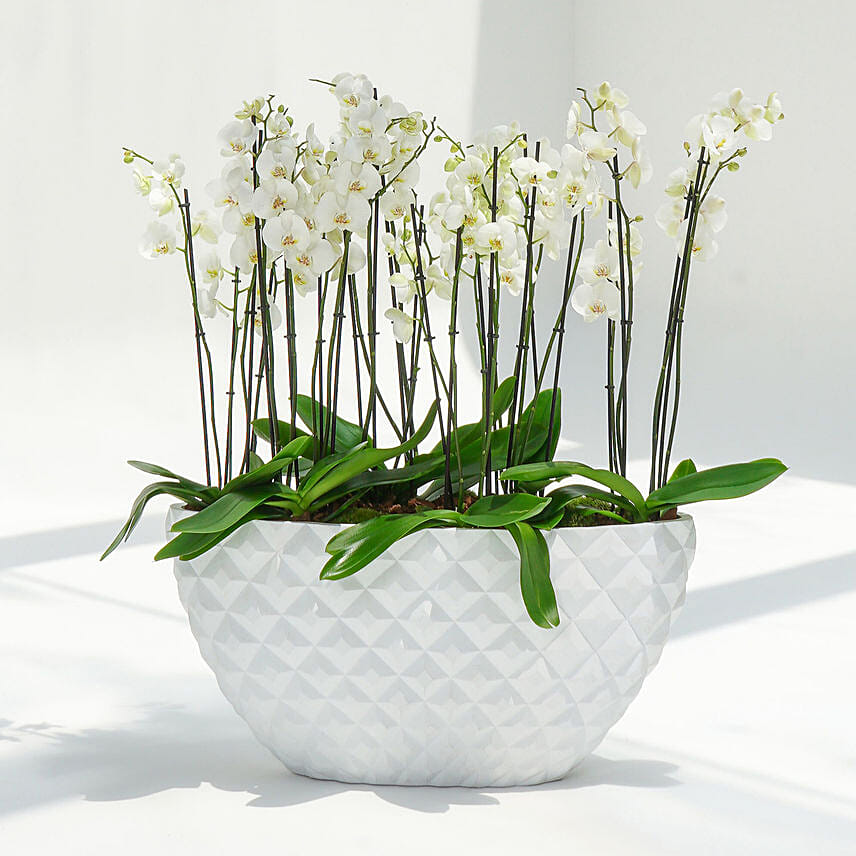24 Stems Holland Orchid in Premium Diamond Textured Planter