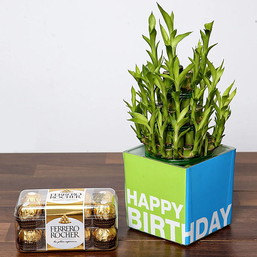 3 Layer Bamboo Plant With Chocolates For Birthday