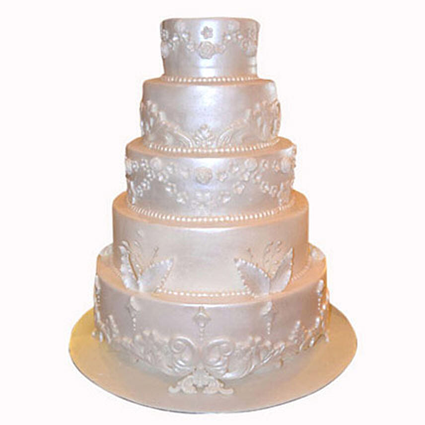 Starting a new life as a couple is indeed a great and amazing feeling which only the couples understand. Bless the couple as they embark towards a long journey together by bringing in this shimmery and delicious 5 Tier Fondant Cake, which is available in Chocolate/Vanilla flavours. Design and taste both are heavenly in this cake.