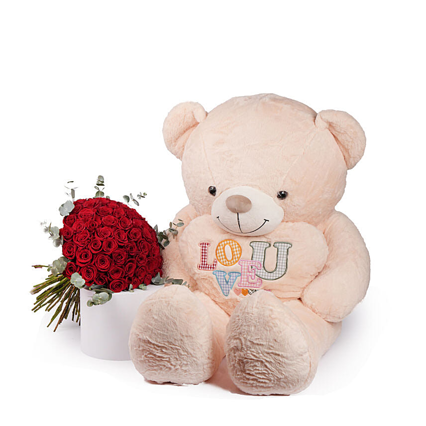 50 Roses Bouquet with Big Teddy Combo