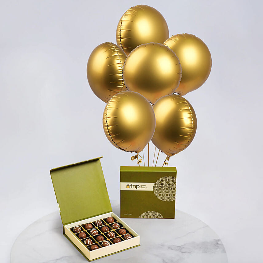 6 Golden Foil Balloons & Hazelnut Chocolates