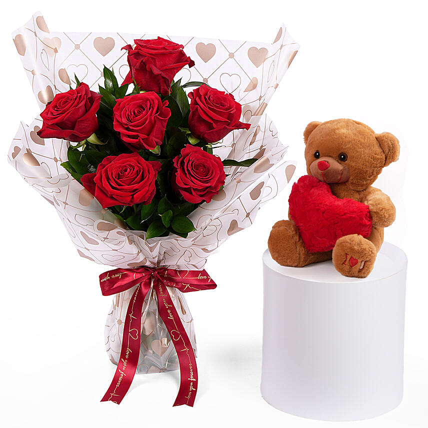 6 Roses of Love Bouquet with Teddy