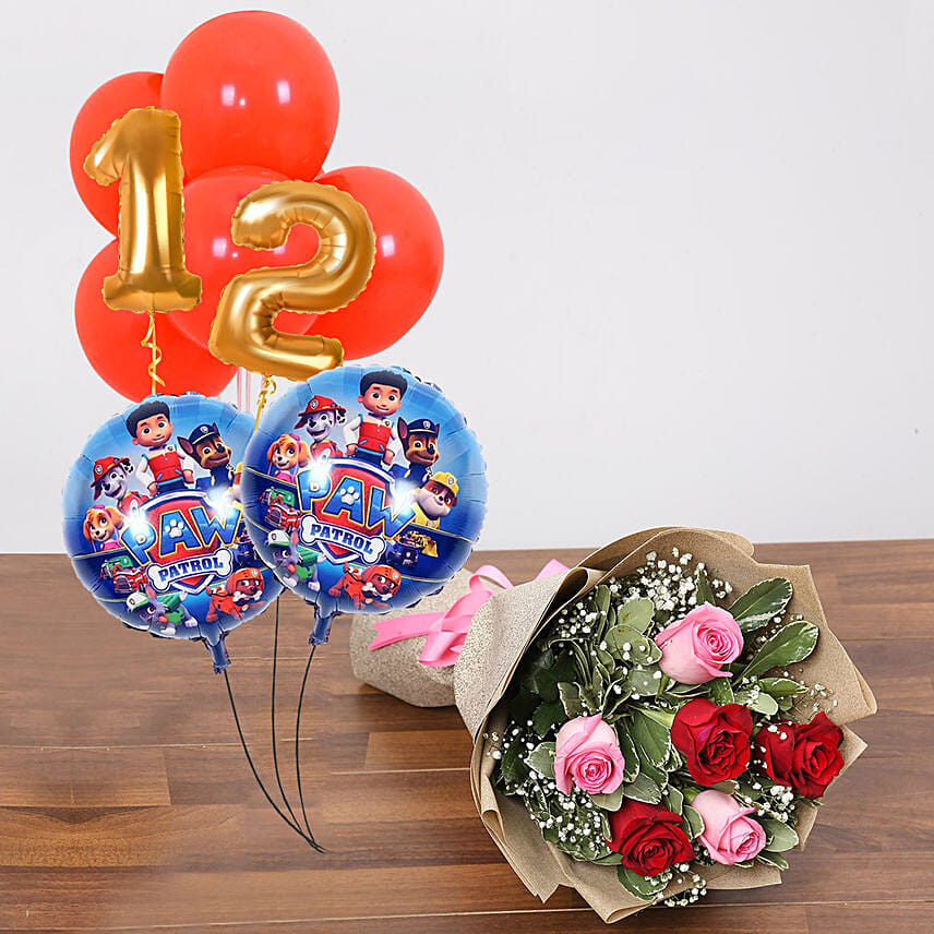 9 Paw Patrol Red and Customised Balloons With Bouquet