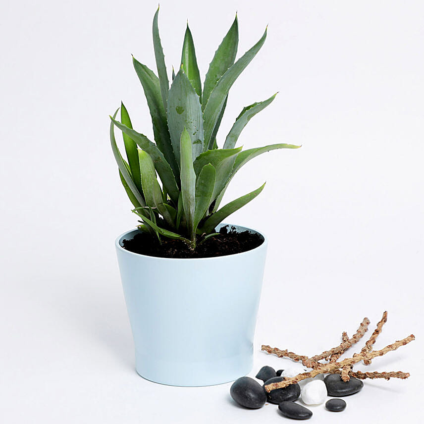 Agave Attenuata In Blue Ceramic Pot