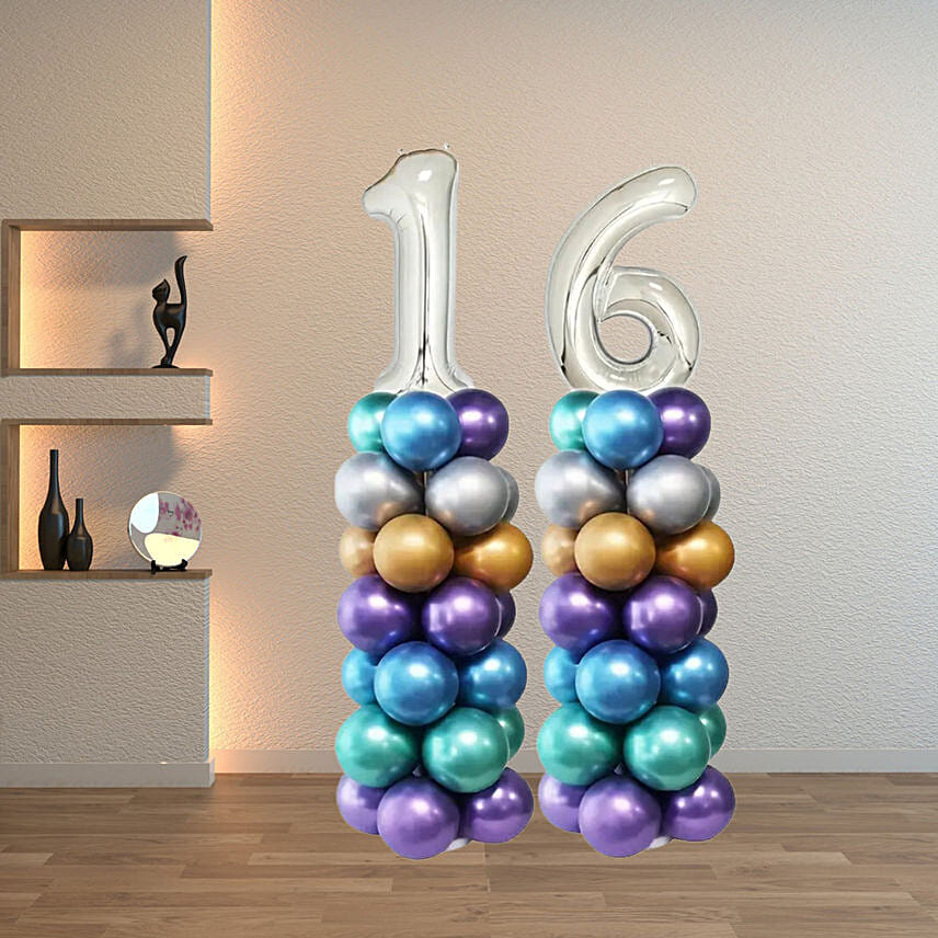 Age Number Chrome Balloons Pillar