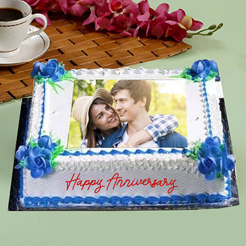 Anniversary Floral Photo Cake- Black Forest 1 Kg