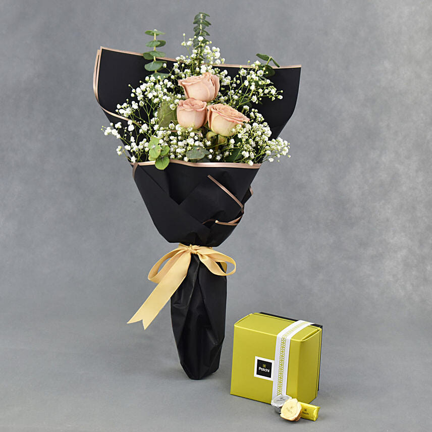 Assorted Patchi Chocolates 250 Grams With Roses