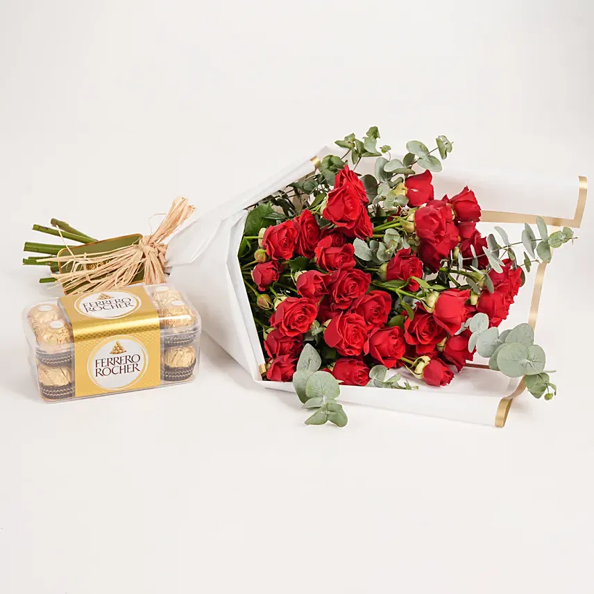 Baby Roses Bouquet with Ferrero Rocher Chocolate