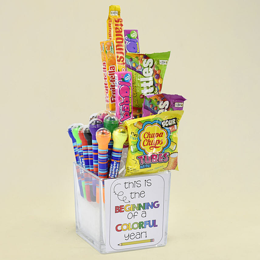 Consisting of stationary & sweet treats, this back to school theme vase is a great option to send across and bring a smile on the kid's face.