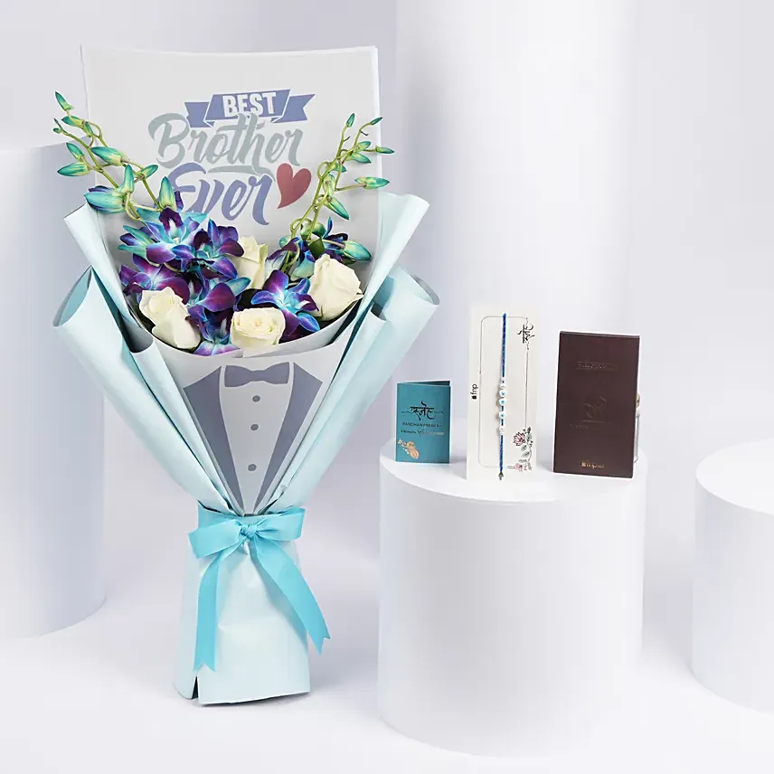 Best Brother Flower Boquuet with Rakhi and Chocolate