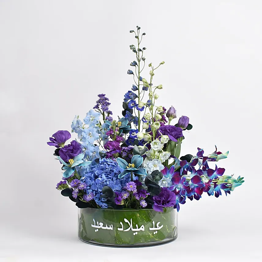 • Fillers - 3 Blue Aster, 3 Blue Statice, 2 Golden Phothos, 2 Cinerea Eucalyptus