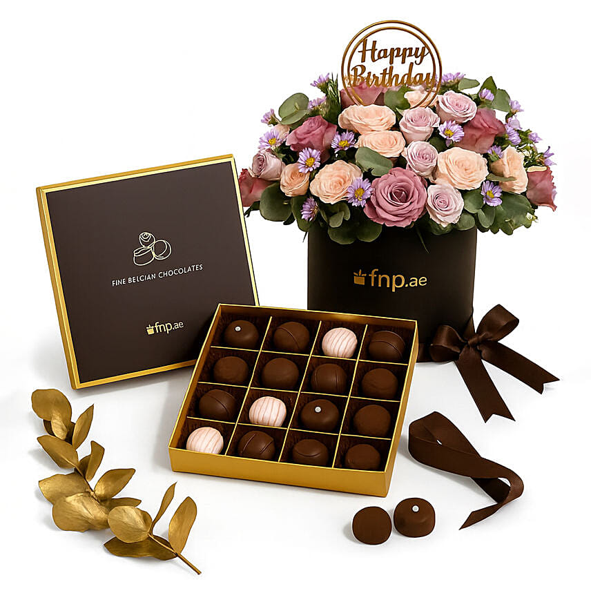 Birthday Flowers Box with Truffle Chocolate Combo