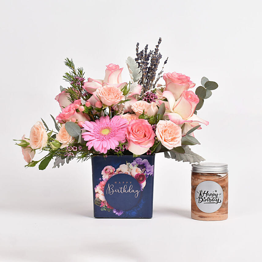 Birthday Mix Flowers Vase with Jar Cake