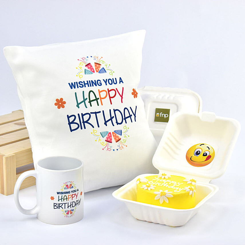 Birthday Wish Lunchbox Chocolate Cake Mug N Cushion