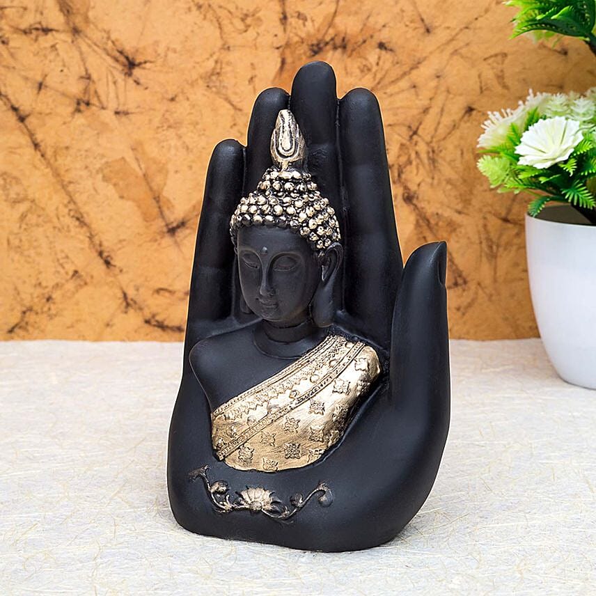 • Black & Gold-Toned Handcrafted Palm Buddha Figurine